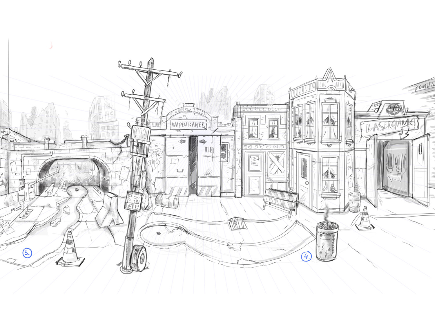 Voor Moos Studioos en HDB hebben de eerste ontwerpschetsen gemaakt voor The City. Deze enorme hal bevat zeer veel familieactiviteiten en de schetsen zijn door decorbouwers exact nagemaakt. De activiteiten bestaan o.a. uit Lasergamen, Minigolf, Bowlen, Joy de boules, VR en nog veel meer. Ook het logo is door ons ontworpen.